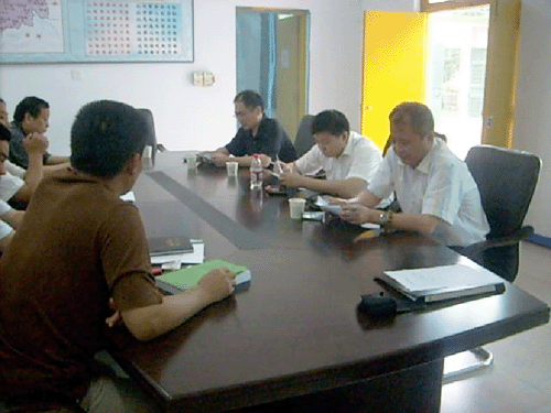 "2007年7月5日,煤層氣王昆副總、工程部程飛經理一行冒著大雨來到永城項目部看望大家和指導工作。