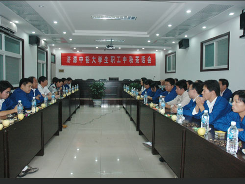 當日晚,在濟源公司多功能教室,燈火輝煌,果實飄香,月餅、蘋果、糖果、瓜子等擺滿桌子。大學生職工們落座后,公司中層以上干部也隨即趕到,陪他們共度佳節。