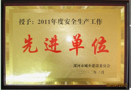 "漯河公司訊 日前,在漯河市建委2012年法制穩(wěn)定暨安全生產(chǎn)工作會議上,漯河公司被市建委授予2011年度安全生產(chǎn)工作先進單位、平安建設(shè)工作先進單位。