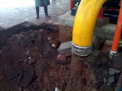 三門峽公司訊 受連續(xù)大規(guī)模降雨影響,三門峽公司靈寶大王站區(qū)及三門峽門站院內(nèi)出口管線處相繼于9月11日晚間、9月13日上午出現(xiàn)嚴(yán)重塌陷。接到值班人員匯報(bào)后,三門峽公司迅速組織相關(guān)人員進(jìn)行搶險(xiǎn)作業(yè),及時(shí)對(duì)險(xiǎn)情予以了有效控制,確保了燃?xì)夤艿赖陌踩珶o(wú)恙。