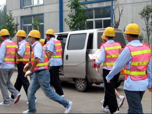 搶險(xiǎn)人員緊急集合趕往事故現(xiàn)場
