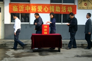 臨沂中裕訊 日前,臨沂中裕全體干職員工攜手業務、施工單位共同發起捐款活動,于獵獵寒風之中給困難員工周仕利同志及其家人送去了一份暖烘烘、沉甸甸的關懷。