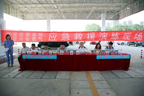 新密公司訊 6月14日,新密公司與新密市質監(jiān)局、新密市公安消防中隊聯合舉行了加氣站消防演練。