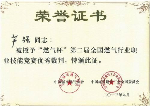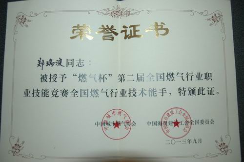 大賽結束后,中國城市燃氣協會下發表彰文件,組委會舉行了隆重的頒獎儀式。至此,中裕燃氣的幾名技術精英以良好的成績完成了在全國燃氣行業技術競賽中的“首秀”。