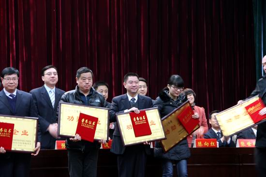 臨沂中裕能源訊 1月10日,在臨沂經濟技術開發區管委會組織召開的“臨沂經濟技術開發區領導干部大會”上,臨沂中裕能源被授予了“2013年度功勛企業”、“2013年度十佳利用外資企業”榮譽,臨沂中裕能源董事長李報國先生被授予了“2013年度創業功臣”榮譽稱號。