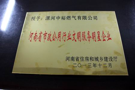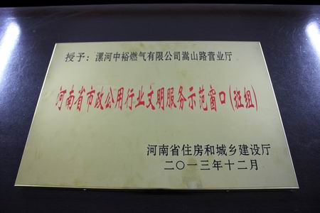 漯河公司訊 3月28日,在濟(jì)源召開(kāi)的“全省城市建設(shè)管理工作座談會(huì)”上,河南省住房和城鄉(xiāng)建設(shè)廳對(duì)2013年全省市政公用行業(yè)“講文明、樹(shù)新風(fēng)、規(guī)范服務(wù)促發(fā)展”競(jìng)賽活動(dòng)進(jìn)行了總結(jié)、表彰,漯河公司榮獲“河南省市政公用行業(yè)文明服務(wù)明星企業(yè)”榮譽(yù)稱號(hào),漯河公司嵩山路營(yíng)業(yè)廳榮獲“河南省市政公用行業(yè)文明服務(wù)示范窗口(班組)”榮譽(yù)稱號(hào)。