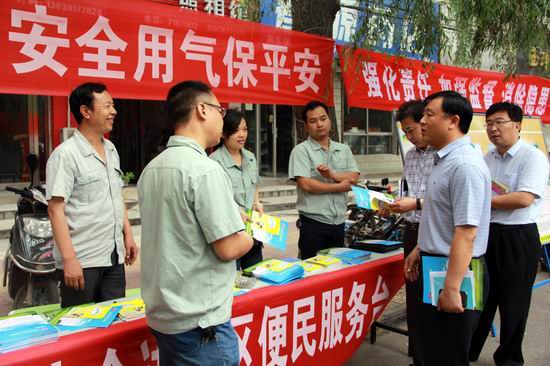 焦作公司訊 2014年6月16日,修武中裕燃?xì)獍l(fā)展有限公司組織員工走上街頭,針對(duì)安全用氣知識(shí)對(duì)廣大居民提供宣傳咨詢服務(wù)。通過(guò)設(shè)立宣傳點(diǎn)、懸掛橫幅、擺放展板,向過(guò)往群眾發(fā)放宣傳資料,接受用戶用氣安全咨詢等方式加強(qiáng)燃?xì)獍踩麄鳌F陂g,修武縣吳利年副縣長(zhǎng)來(lái)到宣傳點(diǎn)針對(duì)如何安全用氣進(jìn)行了詳細(xì)的咨詢和提問(wèn),對(duì)工作人員的回答予以了高度評(píng)價(jià),同時(shí)提出了盡快推行居民灶具管道硬連接以杜絕安全隱患等要求。活動(dòng)為廣大市民進(jìn)一步了解了如何安全使用燃?xì)饧叭細(xì)庑孤逗笕绾翁幹玫劝踩WR(shí)、提高燃?xì)馐褂冒踩庾R(shí)和操作技能提供了幫助。