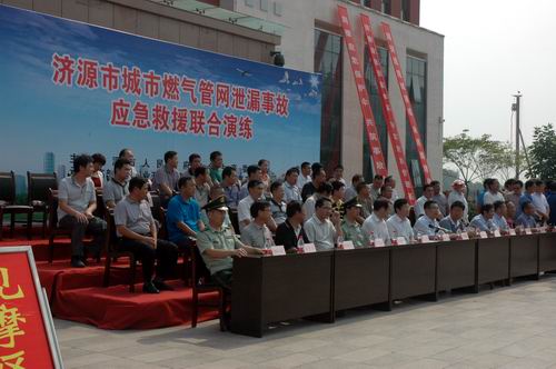 基于近年來濟源市城市燃氣管網等基礎設施建設速度突飛猛進、管網覆蓋范圍及用戶數量顯著增加的發展態勢,以及去年以來國內油氣管道重大事故頻發的安全形勢,濟源市政府安委會于今年6月初決定舉行一次以燃氣管網泄漏事故為模擬場景的大型應急救援聯合演練。鑒于濟源公司此前在應急演練工作中積累的豐富經驗和做出的突出成績,濟源市安委會決定委托濟源公司協同濟源市高新產業集聚區管委會聯合承辦本次演練。一個月來,濟源公司精心籌備方案擬定、人員器械組織等工作,組織參演人員冒著高溫先后進行五次模擬預演,最終不負重托,圓滿完成任務,得到了濟源市安委會的充分肯定和好評。