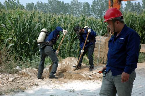 7月7日15時許,演練以“濟源市高新產業集聚區社會福利院門前,市政施工車輛意外挖裂次高壓天然氣地埋管道,大量的天然氣噴出地面”為背景展開,接到報警電話后,濟源公司迅速啟動搶險預案,疏散、搶險、消防、聯絡、救護、后勤、供應等小組火速奔赴現場,與此同時濟源市公安消防支隊、120急救中心等單位也派出救援車輛及人員趕赴現場……